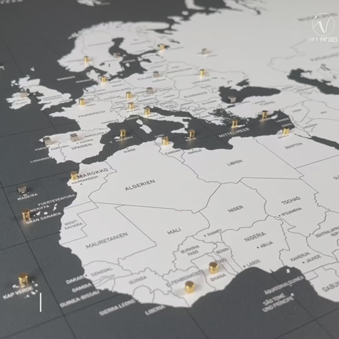 Du suchst eine Weltkarte als Pinnwand mit der du deine Abenteuer und deine Reiseziele markieren und festhalten kannst? Unsere magnetische Weltkarte ist mehr als nur ein Wandbild – sie ist dein persönliches Reisetagebuch für dein Zuhause. Ob als Geschenk oder für dich selbst: markiere mit goldenen und silbernen Magneten, wo du schon warst – und wo du noch hinwillst. Diese Weltkarte mit Pins ist modern, hochwertig und eine echte Alternative: keine Weltkarte aus Kork, keine Weltkarte zum Freirubbeln – sondern eine langlebige und stilvolle Lösung, um deine Reisen sichtbar zu machen.