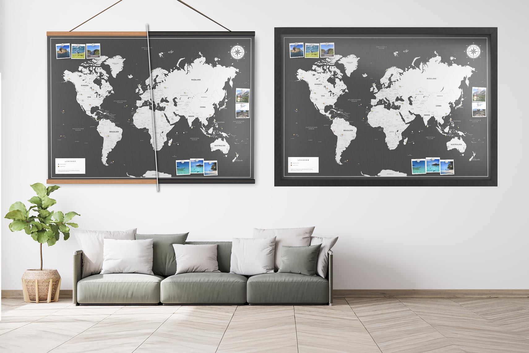 So kannst du deine Weltkarte ganz einfach aufhängen! Wähle "Die Leiste" oder "Der Rahmen".